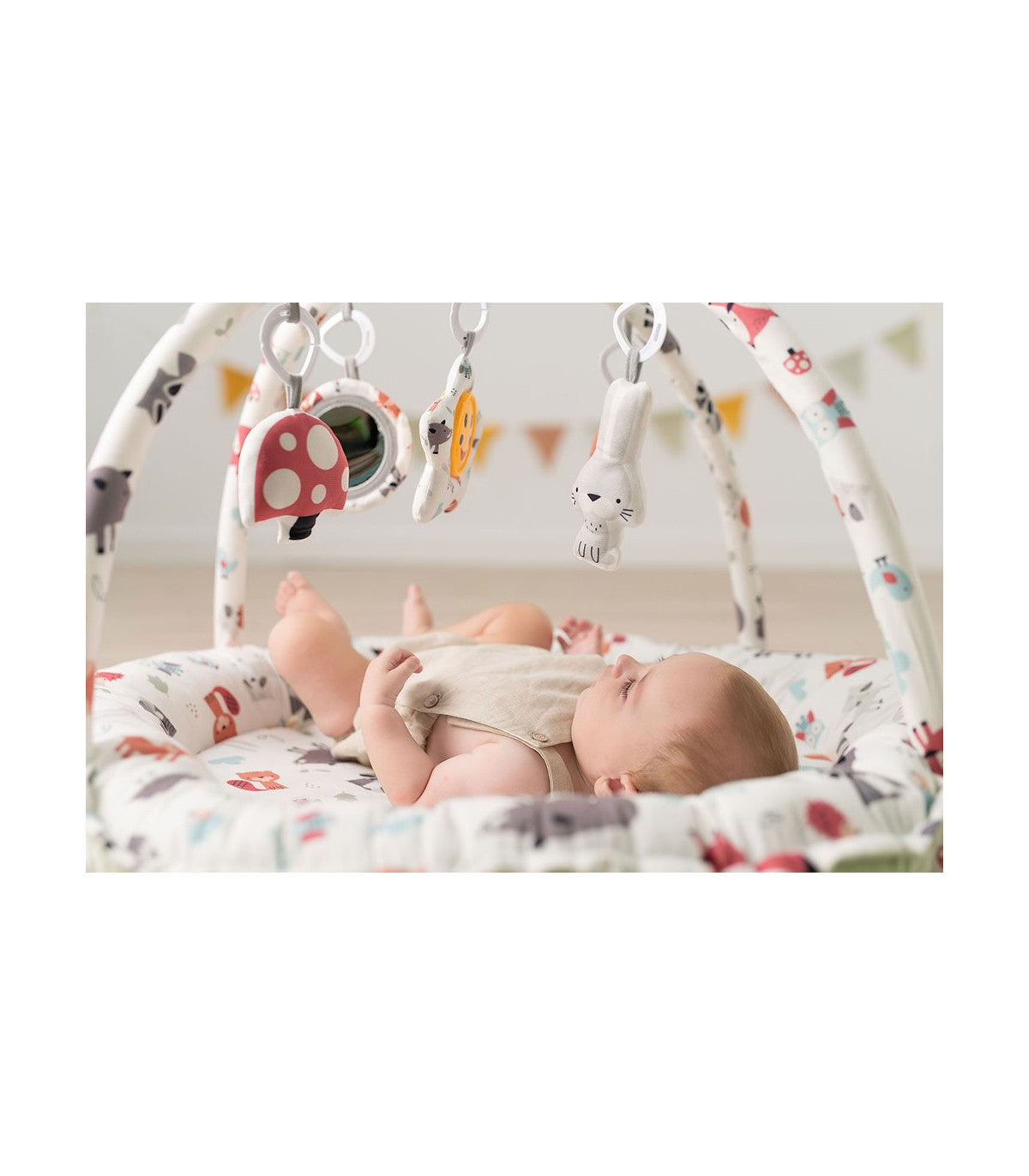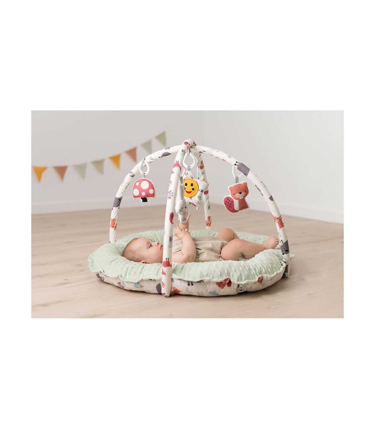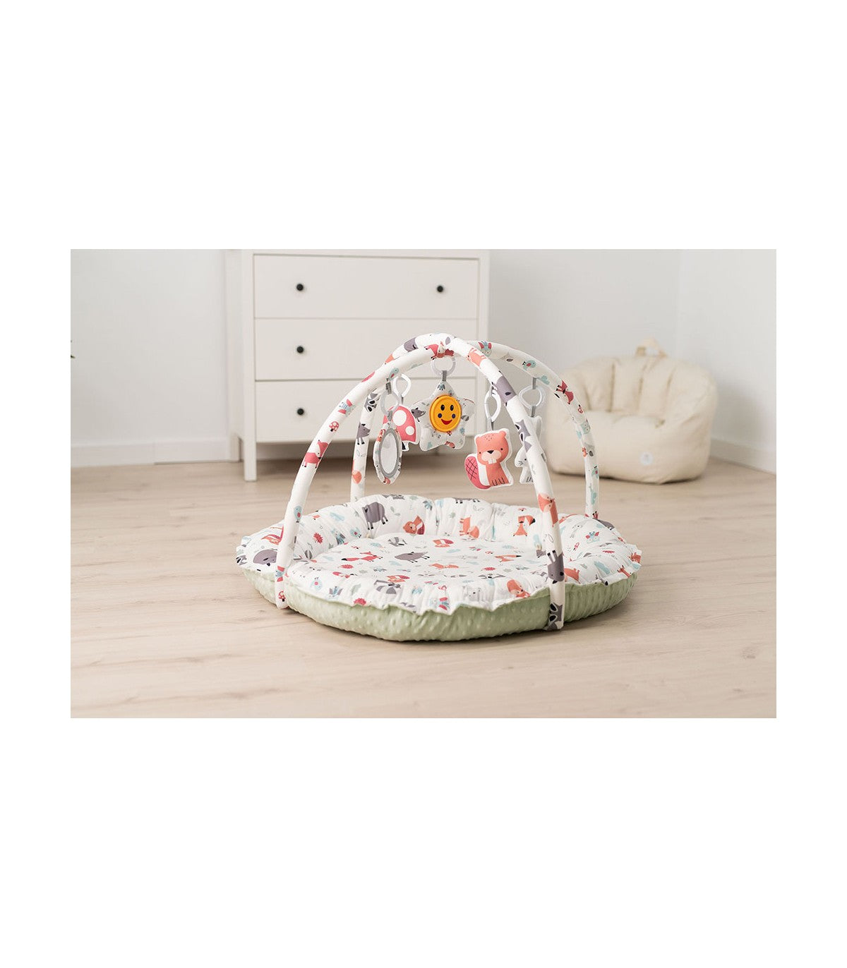 La alfombra de actividades reversible con arcos ha sido diseñada para acompañar a tu pequeño desde sus primeros días. Además de estimular el desarrollo motor, visual y cognitivo, también proporciona un espacio acogedor y seguro gracias a sus laterales acolchados. Con los arcos y juguetes colgantes, tu bebé podrá disfrutar de una zona de juegos que le permita descubrir nuevas habilidades.