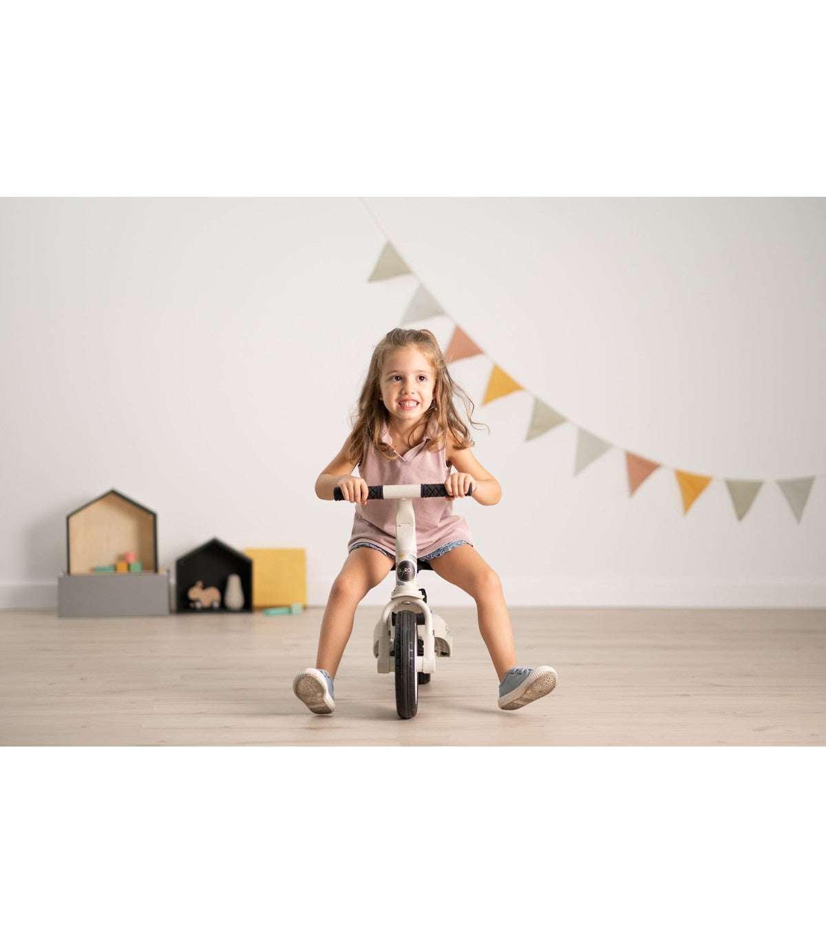 Diseñado para ofrecer la máxima comodidad y seguridad, incluye una práctica capota que protege a los más pequeños del sol para disfrutar de los paseos al aire libre sin preocupaciones. Además, su aro de protección añade una capa extra de seguridad para que el niño esté siempre seguro mientras explora su entorno. Y al igual que su hermano mayor Gyro, se adapta a las diferentes etapas del crecimiento del bebé, permitiendo su uso como triciclo guiado y, posteriormente, como triciclo y bici independiente.